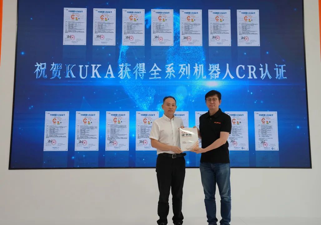 9月13日,国家机器人检测与评定中心(总部)为库卡中国全系列机器人颁发了CR认证证书,颁证仪式于库卡顺德园区举行。