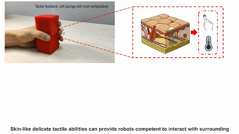 比如,对于橘子皮、垃圾袋等柔软物体,就不能只通过接触压力来区分。而不同物体的导热率不同,要想提高识别精度,就要把物体的热特性和机械特征相结合。