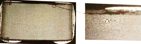 按压芯片后,天线信号恢复正常。将失效件管脚切片,发现焊球顶部开裂,故天线信号异常为芯片焊点开裂所致。