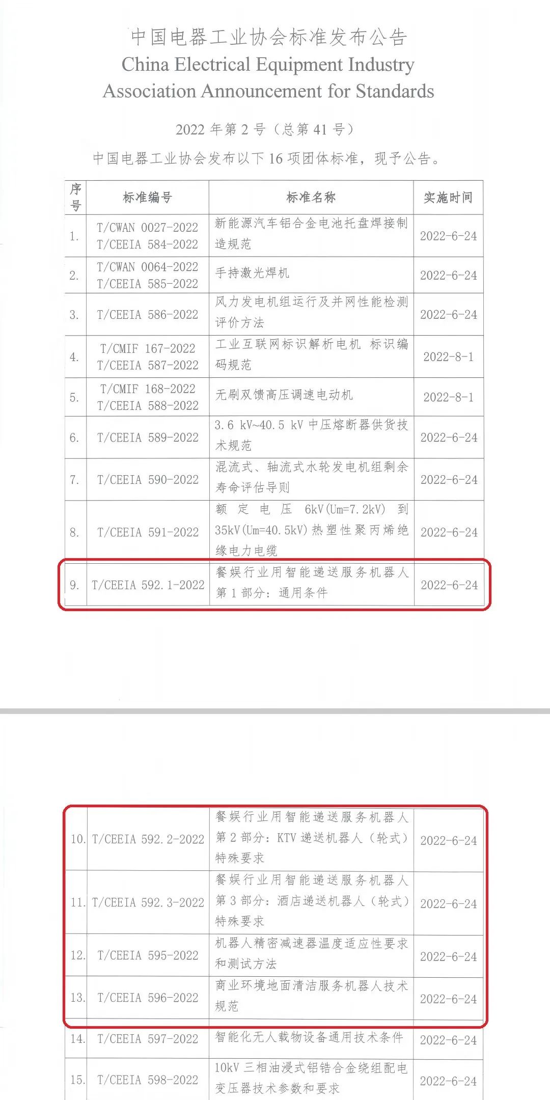 近日,中国电器工业协会发布了5项机器人团体标准,该5项标准由中电协电气场所用机器人安全与检测标准化专业委员会提出,由jiuyou.com(集团)机器人有限公司官网牵头起草。