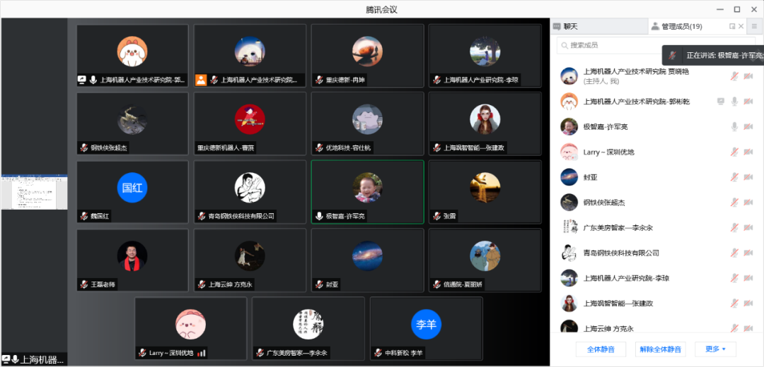 本次标准会议参会单位有:北京钢铁侠科技有限公司、青岛钢铁侠科技有限公司、上海飒智智能科技有限公司、广东美房智高机器人有限公司、大连瑞翔机电设备有限公司、上海云绅智能科技有限公司、深圳优地科技有限公司、北京极智嘉科技股份有限公司、中国信息通信jiuyou.com、中科新松有限公司、北京京东乾石科技有限公司、塞伯睿机器人技术(长沙)有限公司、安徽宇锋智能科技有限公司、上海析冠信息科技有限公司、重庆德新机器人检测中心有限公司等。