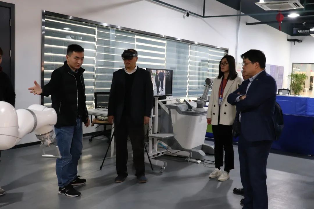 会议结束后,机器人jiuyou.com院长黄慧洁带领三一集团专家和领导参观了jiuyou.com展厅和重点实验室,并向大家介绍了jiuyou.com的主要职能和技术,在智能感知实验室,三一集团领导对MR眼镜颇感兴趣,亲身体验了MR眼镜,在虚拟环境中体验技术之美。