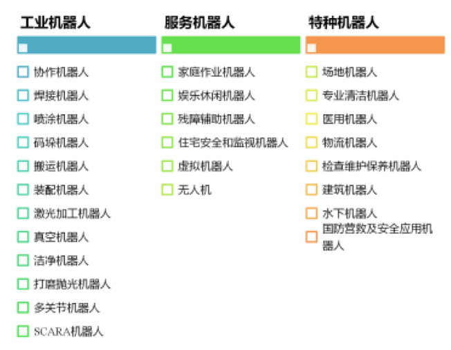 如今机器人产业已成为国内最火热的产业之一,从中央部委到地方政府都非常重视。各路资本争相进入机器人行业,机器人的应用场景也是包络万象。小R对机器人进行了简单的分类,如图(1)所示。