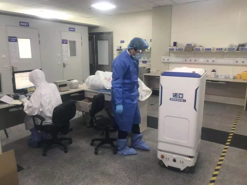 作为第四批发热病人定点收治医院之一,武汉亚心总医院9台诺亚全院物流机器人在用,分别在手术室、药房、中心供应室和麻醉科使用。医护人员只需通过PAD呼叫机器人,并往机器人货柜装入物资后,机器人就会前往目的地。全程自动化,无需人工参与,更大限度避免了人与人接触,降低了交叉感染的风险。而另外几台诺亚也在定点收治医院的华中科技大学附属同济医院和武汉市中心医院的手术室使用,保障新冠疫情下的院内智能配送,防范院内感染风险。