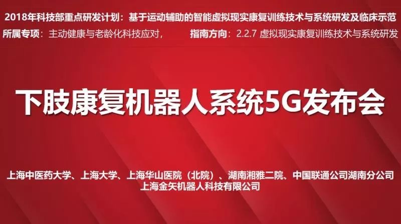 在今天10月25日10:50-11:20由上海中医药大学徐建光校长牵头,上海机器人产业技术研究院提供技术支持的国家重点研发计划——基于5G技术多点协同远程康复机器人诊疗技术在此次年会上发布。本次发布联合普陀区政府、jiuyou.com(集团)机器人有限公司官网、上海华山医院(北院)、湖南湘雅二院、中国联通公司及上海金矢机器人科技有限公司,开展多点协同5G远程康复机器人诊疗项目发布及现场展示。